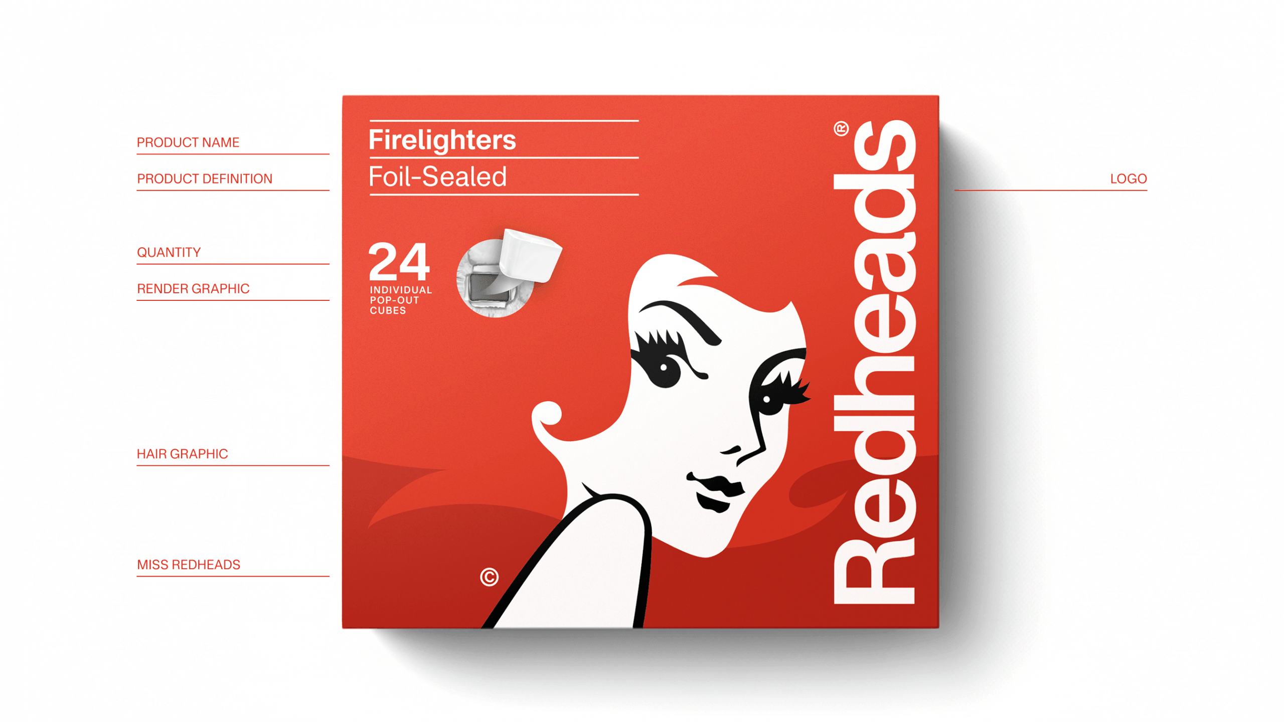 This approach allowed us to maintain a cohesive, structured look while accommodating the variety of pack formats in the Redheads range. The system provides clarity and balance, making the packaging instantly recognisable and adaptable.
